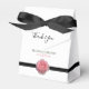 Ce design présente une élégante fleur rose rose. La rose rose florale associée à l'élégante image de ruban noir créent une bordure simple et sophistiquée encadrant le texte. Les tons roses de la fleur rose contrastent avec le ruban noir et le libellé créant un style chic et élégant. Design ballotin de mariage élégant avec des éléments modernes. Des invitations de mariage et d'autres articles de papeterie sont également disponibles.