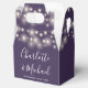 Elégant ballotin de mariage avec de jolies lampes à cordes, des noms chic de script signature et une date spéciale sur un arrière - plan violet. Vous pouvez personnaliser avec votre propre message de remerciement au contraire. Une façon parfaite de remercier vos invités ! Conçu par Thisisnotme©