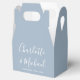 Ballotin de mariage élégant avec des noms de script signature chic et une date spéciale sur un arrière - plan bleu poussiéreux. Vous pouvez personnaliser avec votre propre message de remerciement au contraire. Une façon parfaite de remercier vos invités ! Conçu par Thisisnotme©