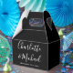 Ballotin de mariage élégant avec des noms de script de signature chic et une date spéciale sur un arrière - plan noir. Vous pouvez personnaliser avec votre propre message de remerciement au contraire. Une façon parfaite de remercier vos invités ! Conçu par Thisisnotme©