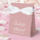 Elégant ballotin de mariage avec des noms de script signature et une date spéciale dans la typographie moderne sur un arrière - plan rose poussiéreux. Vous pouvez personnaliser avec votre propre message de remerciement sous le couvercle. Une façon parfaite de remercier vos invités ! Conçu par Thisisnotme©