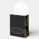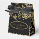 Magnifique damas or sur ballotin arrière - plan noir. Ajoutez votre nom dans le script et la date. Une élégance pure ! Un magnifique accent de ruban satiné.