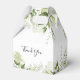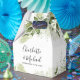 Elégant ballotin de mariage avec des feuilles verdoyants, des noms chic de script et une date spéciale. Vous pouvez personnaliser avec votre propre message de remerciement au contraire. Une façon parfaite de remercier vos invités ! Conçu par Thisisnotme©