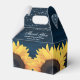 Rustique bleu marine bois et tournesol mariage merci ballotin parfait pour une fête de mariage rustique bleu marine inspirée des tournesols. Personnalisez facilement ce ballotin floral bleu marine avec vos détails d'événement.