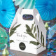 Ce design comprend des feuilles d'oliviers et des branches. La belle verdure des feuilles d'oliviers vient compléter l'élégante forme de cercle noir moderne encerclant la date mariage. Un mélange parfait de modernité et de chic avec des couleurs d'olivier rustiques. Le vert olive, le noir et le blanc s'accordent parfaitement avec un mariage à thème méditerranéen. Conception unique de boîte de mariage avec des éléments modernes. Des invitations de mariage et d'autres articles de papeterie sont également disponibles.