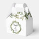 Un ballotin de mariage élégant avec feuillage de bois vert encadrant vos noms et date spéciale dans la typographie chic. Vous pouvez personnaliser avec votre propre message de remerciement au contraire. Une façon parfaite de remercier vos invités ! Conçu par Thisisnotme©