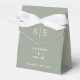 Boîte de faveur de mariage élégante vert sauge personnalisée avec vos noms, initiales de monogramme, date de mariage et message de remerciement spécial. Conçu par Thisisnotme©