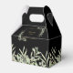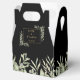 Une boîte de faveur de mariage élégante avec des feuilles aquarelles délicates encadrant votre message de remerciement dans une typographie moderne en or sur fond noir. Vous pouvez personnaliser avec votre propre message de remerciement au verso. Une façon parfaite de dire merci à vos invités ! Conçu par Thisisnotme