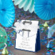 Ballotins Mariage en dentelle bleu marine et blanc damassé