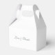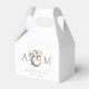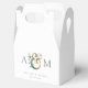 Boîte élégante pour mariage avec un monogramme moderne et une illustration délicate d'eucalyptus en beige et vert doux sur un arrière - plan blanc immaculé. Personnalisez avec vos noms et votre date de mariage pour une touche élégante et coordonnée à votre célébration. Idéal pour les petits cadeaux ou gâteries pour vos invités.
