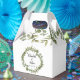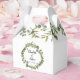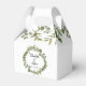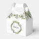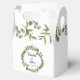 Un élégant contenant de faveur de mariage comportant un feuillage de verdure boisée encadrant vos noms et date spéciale dans une typographie chic. Vous pouvez personnaliser avec votre propre message de remerciement au verso. Un moyen parfait de dire merci à vos invités ! Conçu par Thisisnotme©