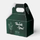 Emerald Green Mariage Fleur sauvage Merci Ballotin | Elegant Gold Luxe Floral Cadeaux pour les invités Présentez vos remerciements sincères dans un style exquis avec nos Ballotins Mariage Fleur sauvage Emerald Green ! Ces charmants ballotins présentent des fleurs sauvages botaniques vert émeraude, élégamment décorés d'or chatoyant, et un message chaleureux de "Merci". Ils sont le moyen idéal pour emballer de petites jetons d’appréciation pour vos invités, alliant charme rustique et beauté naturelle sophistiquée. Ces boîtes fleurs sauvages pour mariage sont conçues pour les couples qui apprécient la beauté de la nature mêlée au luxe moderne. Le riche feuillage vert émeraude et les délicats détails fleurs sauvages apportent un sentiment de tranquillité et de charme organique, tandis que les somptueux accents dorés (ou effet feuille d'or, le cas échéant) fournissent un glamour somptueux. Que votre thème mariage soit un jardin rustique, une célébration extérieure sophistiquée, une histoire botanique moderne, ou tout simplement embrasser la beauté intemporelle des fleurs sauvages, ces ballotins complèteront votre décor et apporteront une touche personnelle de gratitude. Personnalisez facilement ces élégantes boîtes à cadeaux florales de luxe or pour les invités avec votre nom et date mariage, ou un message court personnalisé. Vous pouvez customiser les polices et le placement de texte pour correspondre parfaitement à votre vision mariage unique. Boîte à fleur sauvage vert émeraude, boîte à cadeaux de mariage or, cadeau floral élégant, ballotins luxueux, boîte de remerciement d'or vert, boîte botanique personnalisée, faveur de fleur chic, boîte à invités de luxe, boîte à remerciement personnalisée, boîte à fleurs d'or émeraude.