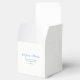 Ces boîtes de faveurs de mariage comprennent des fleurs et des feuilles d'hydrangée bleu aquarelle, ainsi que des noms de mariée et de mariée, message de remerciement et date mariage. Ils font partie d'une collection qui comprend une gamme complète de papeterie mariage et de produits nuptiaux assortis. Visitez les pages de collection de notre magasin pour voir la gamme complète de produits correspondants que vous pouvez personnaliser pour votre mariage.