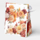 Automne Floral Mariage Favor Box. Cette boîte de faveur de mariage présente des fleurs aquarelles peintes dans les couleurs automnales parfaites d'orange, de rougeur, de jaune, de rouge et de rose avec des accents de feuille d'or. C'est parfait pour les styles de mariage classiques, contemporains et vintage pour la saison d'automne. Parcourez la sélection des invitations de coordination, des cartes RSVP, des panneaux, et plus encore.