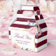 Personnalisez facilement ces boîtes de faveur de mariage florales bourgogne et rose tendue avec vos détails de mariage. Ces boîtes de remerciement personnalisées peuvent être personnalisées pour d'autres occasions, telles que les anniversaires, les mariages de demoiselle d'honneur ou les baby showers.