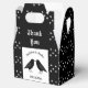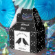 Cette superbe boîte de faveur de mariage présente une image art numérique d'une paire de beaux corbeaux noirs se faisant face et ressemblant à des baisers. Elles sont noires avec les yeux béatifiés et les pieds et les becs gris. Il y a du texte personnalisé pour que vous puissiez inclure les noms du couple heureux et la date du Mariage.