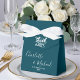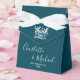 Ces élégantes boîtes de faveur de mariage minimaliste à écriture teal profond sont la touche finale parfaite pour votre jour spécial. Personnalisées avec les noms des mariés et la date du mariage, ces boîtes de faveur personnalisées sont sûres d'impressionner vos invités.