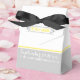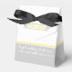 Ballotin de mariage moderne jaune, gris, blanc vintage avec un design moderne avec des éléments vintages comme un cadre gris avec vos noms et la date de votre événement sur arrière - plan gris et blanc. Il y a une bande jaune le long de la boîte. Ce design contemporain et tendance mais avec des éléments rétro avec une police de script est entièrement personnalisable et fait partie d'un ensemble mariage.