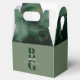Un design de monogramme en marbre vert moderne. Un design unique qui utilise des éléments contemporains et une typographie. Un design simple olive, vert sauge avec une touche de pierre de marbre vert. Un design de boîte de cadeau de mariage vert élégant avec des éléments modernes. Les invitations de mariage assorties et autres articles de papeterie sont également disponibles.