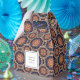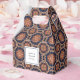 Minuscule ballotin avec un motif répétitif d'éléments décoratifs ornés en forme de fleurs, d'étoiles et de soleil.