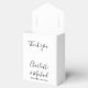 Élégante boîte de faveur de mariage noir et blanc avec de jolies lumières à cordes, des noms de script de signature stylisés et date spéciale ensemble dans la typographie chic. Vous pouvez personnaliser avec votre propre message de remerciement sous le couvercle. Une façon parfaite de remercier vos invités ! Conçu par Thisisnotme©