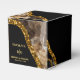 Un beau design de géode en agate cristal de pierre précieuse noire et or avec des accents de paillettes dorées. Ce design élégant à effet marbré combinant des tons noirs et or crée une pièce sophistiquée d'art abstrait en améthyste. La combinaison des couleurs noire et or crée un style sophistiqué, tendance et chic. Design élégant de boîte de faveur de mariage avec des éléments modernes. La mise en page simple de la typographie lui donne un style distinct. Les invitations de mariage assorties et autres articles de papeterie sont également disponibles.