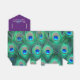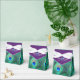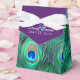 Élégantes boîtes de dragées de mariage en plum violet et vert émeraude vibrant, bleu royal et bleu sarcelle avec plume de paon. Vous pouvez ajouter du texte dans le style de police, la taille et la couleur de votre choix sur cette belle boîte de dragées de mariage paon violet prune.