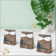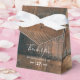 Ce design comprend un arrière - plan rustique en planches de bois avec la photo de votre couple. L'arrière - plan en bois marron rustique est complété par le texte blanc et votre photo personnelle qui est affiché comme fixé sur l'arrière - plan en bois avec des boulons rouillés rustiques. Les tons marrons du grain de bois créent une grange rustique comme un jardin. Design ballotin de mariage élégant avec des éléments modernes. Des invitations de mariage et d'autres articles de papeterie sont également disponibles.