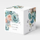 Un étonnant arrangement floral d'aquarelle avec des peonies et des roses turquoise, menthe foncée, pêche et pêche foncée, magnifiquement accentué avec des éléments en diamant et feuillage vert profond. Parfait pour les invitations de mariage élégantes !