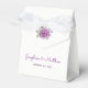 Ces boîtes de faveurs de mariage ont des roses violets. L'avant et l'arrière de la boîte ont des noms de roses, de mariés et de mariés et la date du mariage. Ces boîtes de faveur de mariage font partie de la Collection de Mariages Roses violets qui comprend une gamme complète de papeterie mariage correspondante comme les invitations de mariage, les cartes-réponses, les cartes d'information, les étiquettes de adresse, les autocollants, les timbres-poste, les enveloppes, les autocollants de faveur, les cartes de souhaits, les programmes, les menus, les cadeaux de mariée et bien plus encore. Visitez la page de collection de notre magasin pour voir la gamme complète de produits correspondants que vous pouvez personnaliser pour votre mariage.