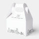 Apportez un sourire au visage de votre invité mariage avec ces boîtes à skyline de la ville de Baltimore, mignonnes mais élégantes. Elles sont dotées d'un accueil de bienvenue en face du toit, suivi du nom de la ville et de la date du mariage en dessous. En dessous se trouvent les noms des jeunes mariés dans une police de style aéré. Autour du fond se trouve une version moderne de style déco de l'horizon unique de la ville. Sur la partie arrière sont des cloches mariages avec le message "L'amour est doux" un indicateur des friandises à l'intérieur de la boîte et l'amour du couple que la boîte représente. —