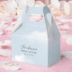 Célébrez la future mariée avec des boîtes de faveurs de mariage sur le thème bleu Cloud 9 élégantes. Le design crée une ambiance minimaliste et charmante pour l'événement, pour une journée remplie d'amour, de joie et de moments précieux. Utilisez les outils de conception pour personnaliser le texte et les polices. Parcourez notre Collection de Mariage Cloud 9 pour la décoration de fête et les articles assortis personnalisés.