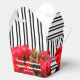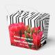 Boîtes de faveur de fête de style à emporter de 2" x 2" x 2,75" avec des roses rouges aquarelles sur des rayures noires et blanches et votre personnalisation de remerciement à l'avant et à l'arrière. Voir les articles CORRESPONDANTS dans notre collection.
