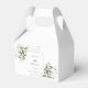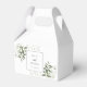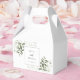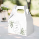 Boîte de cadeau de mariage sur mesure avec un design moderne élégant de vert sauge et de fleurs blanches avec nom et date personnalisés.