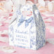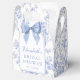 Ces jolies boîtes de faveur de douche de mariage présentent un élégant nœud bleu et une typographie stylée avec un fond floral et peuvent être personnalisées avec votre nom, date spéciale et message de remerciement au verso. Conçu par Thisisnotme©