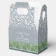 Mariages d'hiver pins lac vert gris art ballotins. Mariages d'hiver vert, gris et neige pins blancs au bord du lac avec gouache et aquarelle design. Personnalisez avec votre propre nom et votre date de mariage. Idéal pour un mariage de Noël ou un mariage d'hiver au bord du lac. © Peinture et design d'origine par Sarah Trett www.sarahtrett.com pour www.mylittleedenweddings.com