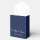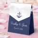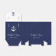 Boîtes de mariage bleu marine (ballotin de tente avec ruban blanc) avec ancre et texte personnalisable - vous pouvez ajouter le nom de la mariée et du marié et la date du mariage.