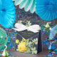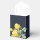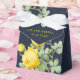 Le design présente une impression couleur avec élément floral dans les tons bleu marine et jaune citron sur le feuillage feuille et rose fleurs sur un arrière - plan d'aquarelle marine et jaune kraft. Idéal pour vos célébrations mariages !