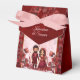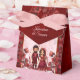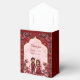 Maroon mariage indien mignon couple de mariées indiennes dessin animé caricature mariage hindou personnalisé ballotin imprimé, mariage indien favorise la frontière de fleur de maroon personnalisé élégant ballotin