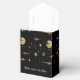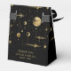 Elégante boîte de faveur de mariage à thème céleste avec une belle illustration montrant des éléments spatiaux.