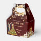 Mariage indien Mehndi Sangeet arrière - plan de la maroon de réception avec un couple indien dansant, préférez les boîtes cadeaux. Fleurs d'or, lanternes marocaines et guirlandes de fées.