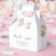 Faites de votre baby shower boho un inoubliable avec notre Oh Baby Boho Collection ballotin! Dotée d'illustrations d'aquarelle de rêve d'un buggy, d'une cigogne et de ballons dans des tons doux et neutres, cette jolie boîte ajoute une touche de charme boho à votre célébration. L’avant affiche un Merci chaleureux à côté du nom de la mère, ce qui en fait un souvenir personnalisé que vos invités adoreront. Parfaits pour organiser des gâteries ou des petits cadeaux, ces ballotins sont personnalisables par votre organisateur de fête pour convenir à votre vision et laisser une impression durable.