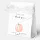 Joli ballotin de baby shower neutre pour le genre avec "merci" en typographie gris simple et un script élégant avec des swashes, et une aquarelle citrouille orange.