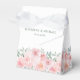 Un mariage élégant merci ballotin avec des aquarelles de fleurs roses rousses et un foilage vert sauge clair, "merci" écrit dans un script romantique élégant et vos noms et date mariage dans une typographie moderne simple.