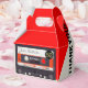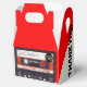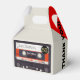 Bande audio rétro (audiocassette) avec étiquette blanc et orange pour personnaliser. 50 est personnalisable sur une petite étiquette noire. Conception sur ballotin gable avec un carré rouge et des textes pour le 50e anniversaire "Merci". D'autres modèles avec d'autres cassettes audio et vidéo disponibles. Jeu d'anniversaire Enregistrer La date (carte postale), invitation, livre d'invité (couverture rigide), étiquette cadeau Merci et plus...
