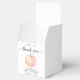 Un mignon ballotin baby shower neutre, avec une aquarelle orange pastel d'un citrouille et "un gentil petit merci" et "un doux petit citrouille est en route" écrit dans une simple typographie grise et un script élégant avec des swashes. Personnalisez facilement le nom et la date de la douche de la mère en coordonnant la typographie grise. Précisez le sexe du bébé si vous le désirez (p. ex., "est en route").