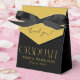 Graduation "Merci !" Ballotins noirs d'or. Ballotins élégants en or et noir pour votre client. Ajoutez le nom de vos diplômés et l'année en cours, Un ruban noir mange la boîte. Offrez à vos invités de petites gâteries et des gâteaux de cette journée importante, comme un merci d'être venus à votre Graduation Party.
