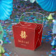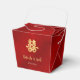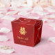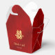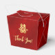 Cette boîte de faveur de mariage chinoise présente un double symbole de bonheur artistique or sur un arrière - plan rouge chatoyant. Belle boîte rouge blanc et or avec des noms de mariée et de mariée et vous remercier mots dans un élégant script manuscrit.