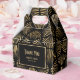 Elégante boîte de mariage art déco noir et or avec feuilles de palme noir et or. Personnalisez facilement ces boîtes de faveur de mariage avec vos détails d'événement. Nos boîtes de faveur de mariage de luxe sont parfaites pour votre mariage noir et or élégant et d'autres occasions. Ces ballotins de remerciement personnalisés peuvent être customisés à d'autres occasions, comme des douches nuptiales, des fêtes d'anniversaire, des baby showers et plus encore.