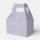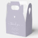 NewParkLane - Sophistiqué Mariage personnalisé 'Merci' Favors Box, avec une élégante typographie / calligraphie avec tourbillons, un petit coeur mignon, contre un arrière - plan lavande / violet. Un design simple, mais chic et élégant pour remercier vos invités mariages pour leur présence. Facile à customiser à Zazzle pour un design personnalisé. Tous les styles de texte, les polices et les couleurs arrière - plans peuvent être modifiés pour s'adapter à votre schéma mariage. Consultez cette collection pour trouver des articles correspondants, comme des panneaux de piédestal, des étiquettes de faveur, des cartes, des nettoyants à main, et plus encore. Avez-vous des souhaits particuliers en matière de design personnel? N'hésitez pas à me contacter.